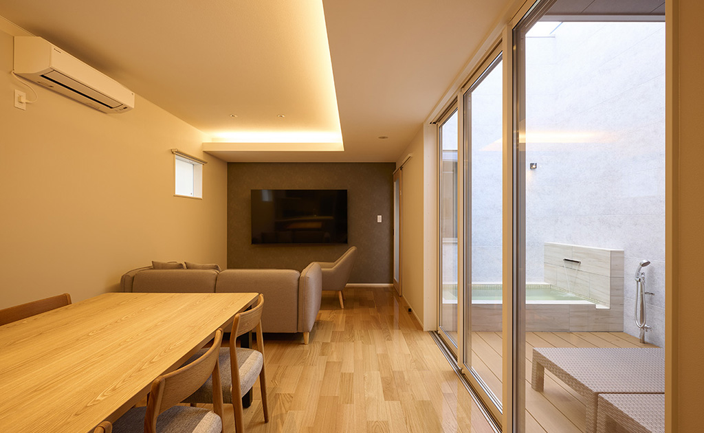 そしてそれを眺める開放的なリビング空間をご用意しました。