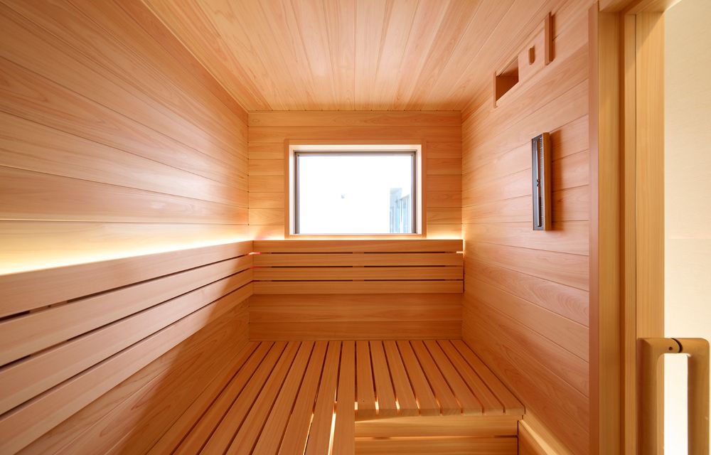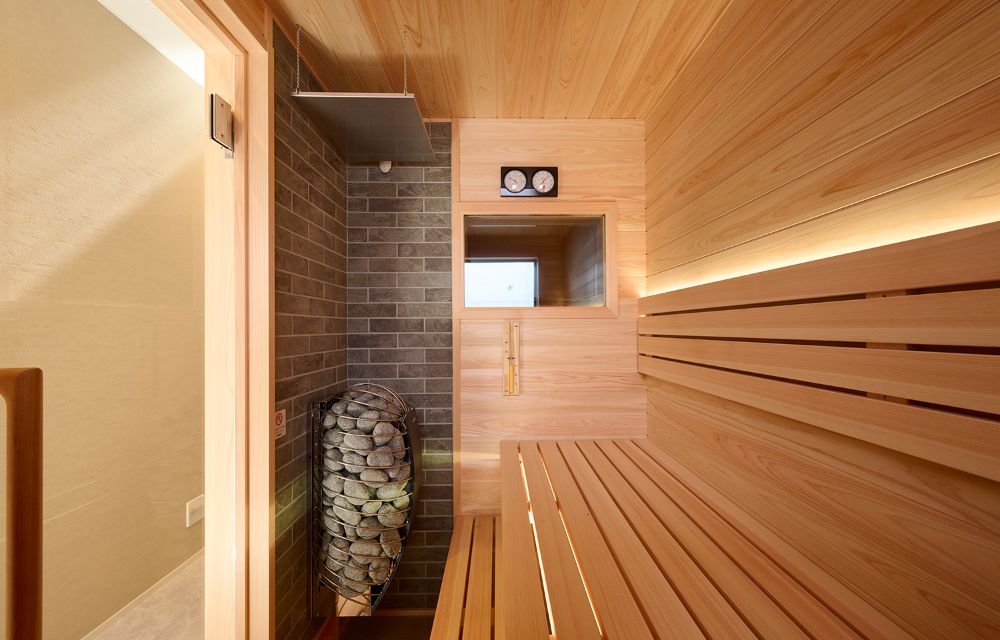 ヒノキが香るサウナは、癒しの時間を存分に楽しむためのオリジナル設計。